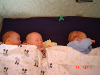 I was away for 11 days. Boy these babies GREW! I also missed the circumcision appointment, which was a relief to me. Chip, Bunny and Celia managed that task and did a fine job. 🙂 It’s so good to have people in our life that will step right up. Each boy is well over 6 lbs. now. All are doing so well, eating 4+ ounces at a feeding. Now we are trying to get them to sleep all night so we can get some sleep! Until then, my mom and Christina are doing morning duty and Chip and I are doing night duty. We get to bed at about 3 a.m. I feel fortunate to get 6 hours of sleep at a time. I wouldn’t change it for a minute! It truly takes all 4 of us to take care of these boys. Everyone does whatever needs to be done and do a great job.