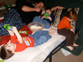 We have a new ritual…Watching the Disney movie “Cars”. The boys just love it. I was as surprised as anyone that they actually are interested in it. One evening we took out “couchbed” and I made a batch of popcorn! HOLY COW! They loved it. Had a fantastic time. So did mommy and daddy. We finished the movie after they went to bed. It was too funny. Our first family time. It’s wonderful. I love it.